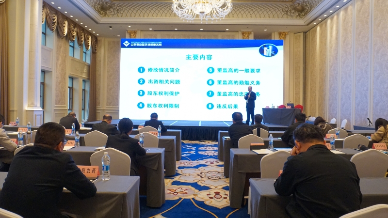 2025年10月17日,泰安市高端化工产业链商(协)会举办法律法规专题培训,山东泰山蓝天律师事务所合伙人高鹏律师应邀作公司法专题分享。