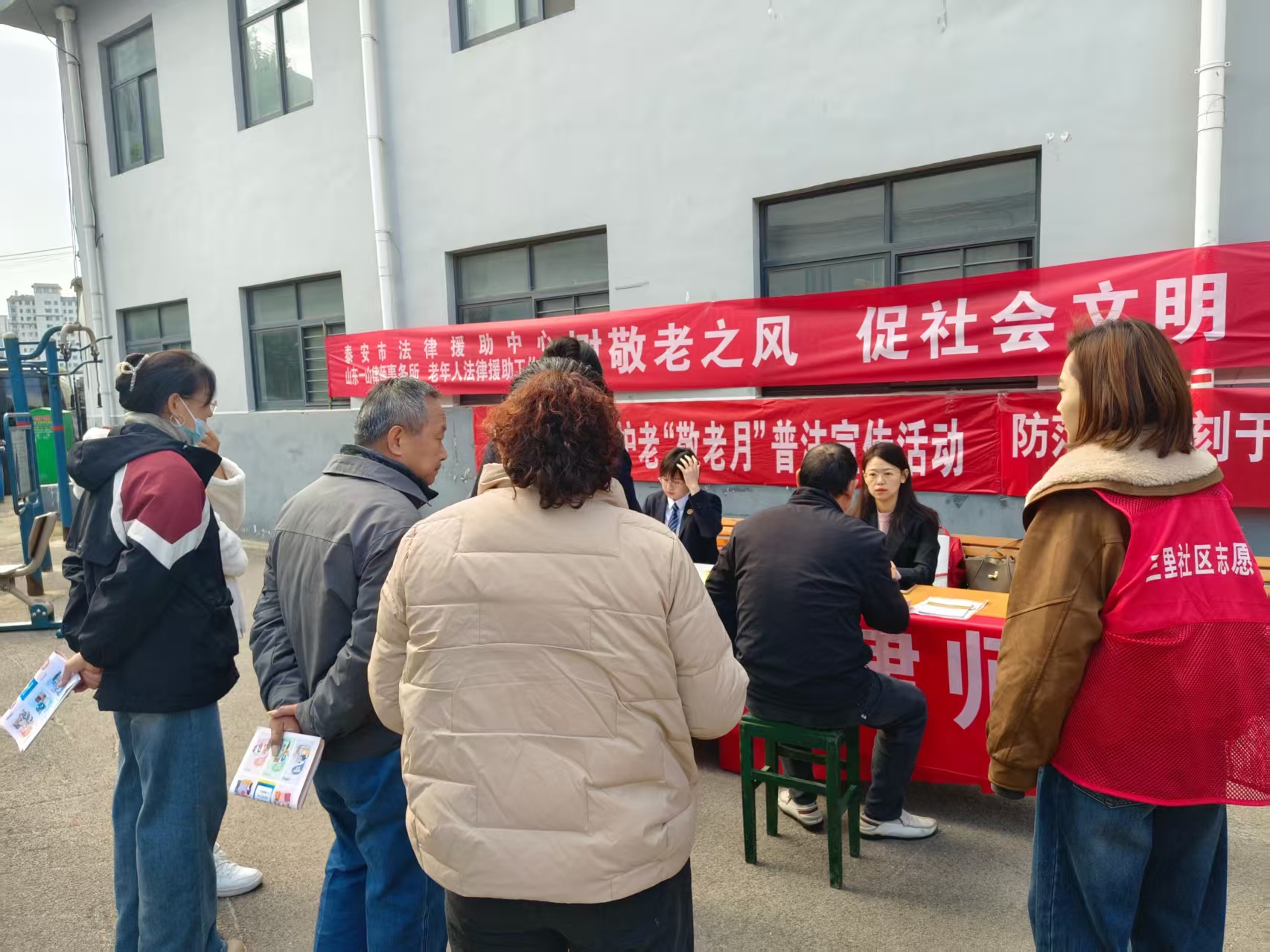 金秋十月,秋意渐浓。为进一步弘扬中华民族孝亲敬老传统美德,增强老年人反诈防骗意识,近日,山东一山律师事务所携手三里社区并联合泰安市城管综合服务中心、泰安市岱宗公证处、泰安市公安局泰山分局三里派出所,共同开展以“懂法护老始于心 敬老助老践于行”为主题的敬老月活动。