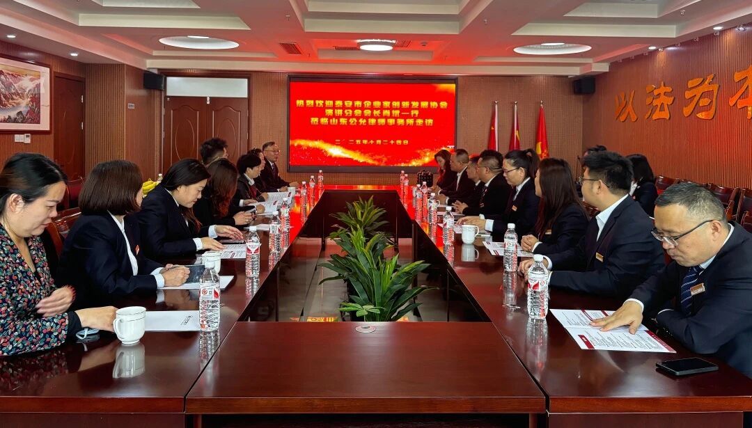 2025年10月24日,泰安市企业家创新发展协会演讲分会会长肖斌率领20余名企业负责人,到山东公允律师事务所开展走访交流。山东公允律师事务所主任毕俊斌、合伙人唐新禄给予了热情接待。