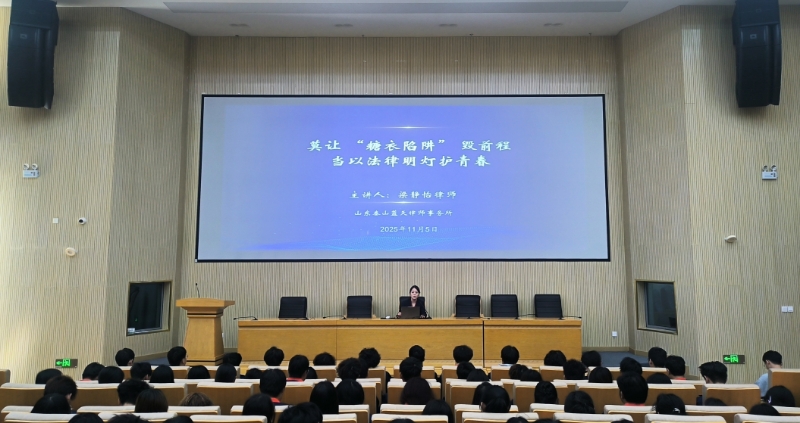 2025年11月5日,山东泰山蓝天律师事务所梁静怡律师受邀走进山东电力高等专科学校,以“莫让‘糖衣陷阱’毁前程 当以法律明灯护青春”为主题,开展普法宣讲活动,通过线上线下相结合的形式为全校3000余名学生送上了一份法律防护指南。