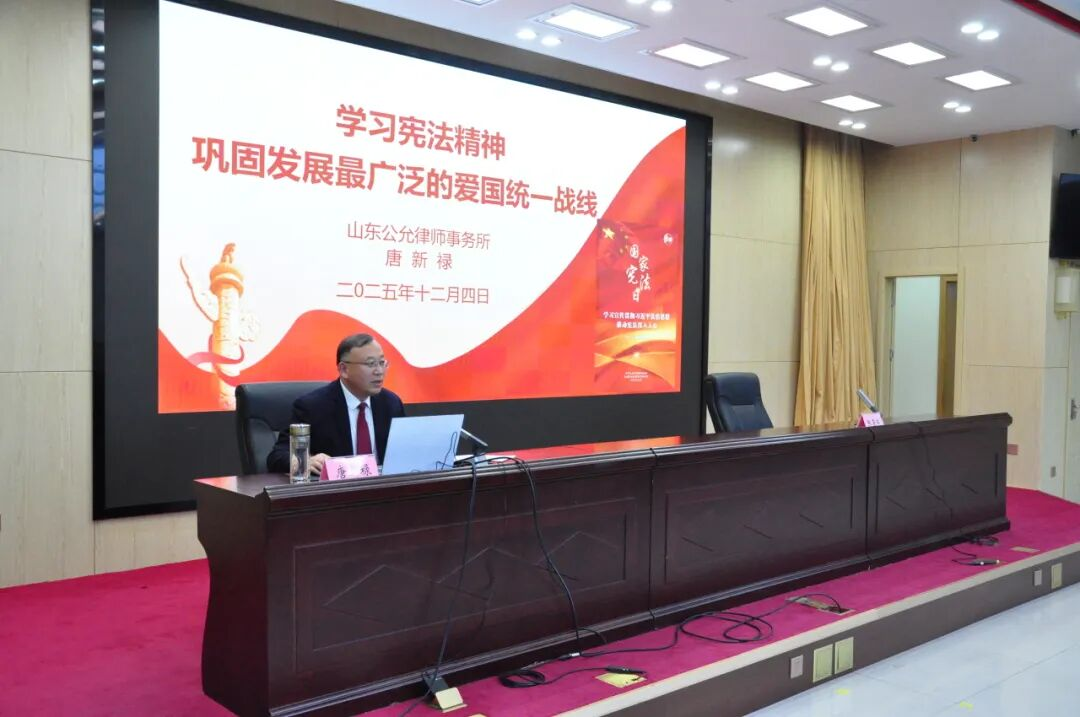 2025年12月4日是第十二个国家宪法日,山东公允律师事务所唐新禄律师应邀前往中共泰安市委统战部,开展了一场内容详实、深入浅出的宪法专题授课。