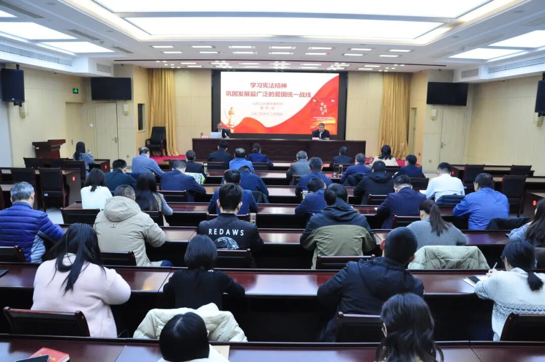 讲座现场,唐新禄律师以习近平法治思想为指导,依据今年11月1日起才开始施行的《法治宣传教育法》,紧紧围绕“宪法是国家根本法”这一核心主题,结合我国宪法的发展历程和修订要点,系统阐述了宪法的重要地位和重要作用。他通过生动的案例,解读了公民的基本权利与义务,强调了宪法对保障人民权益的基础性作用。针对统战工作的特点,唐新禄律师特别讲解了宪法中关于统一战线的相关规定,分析了宪法精神对凝聚社会共识、促进和谐发展的重要指导意义。