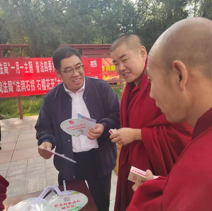 走进寺庙的普法交谈