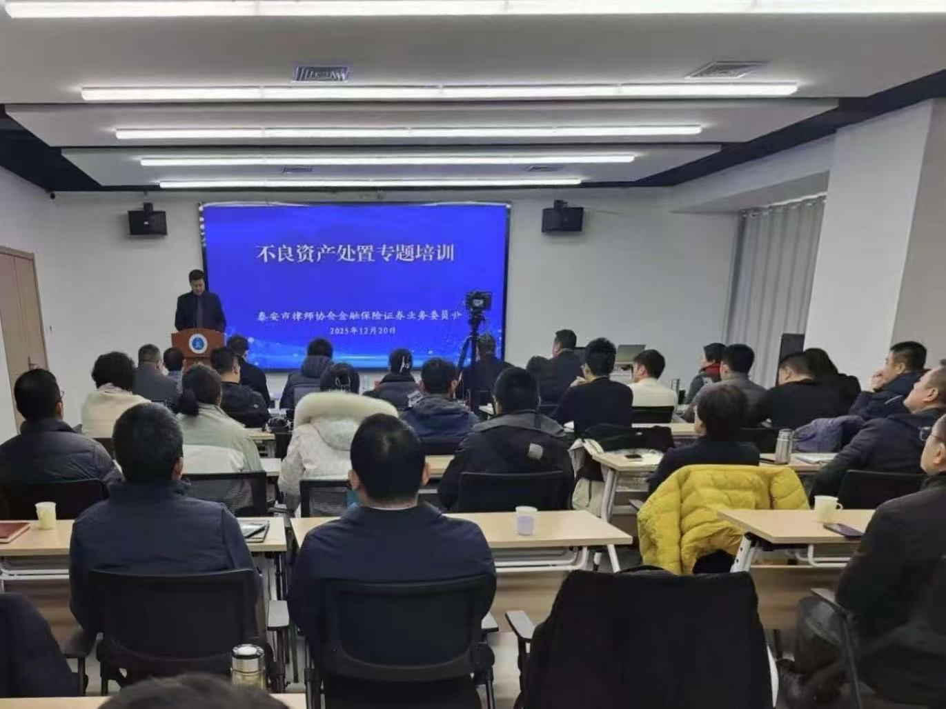 2025年12月20日上午,由泰安市律师协会主办,市律师协会金融保险证券业务委员会承办的“不良资产处置实务”专题培训在市律师协会多功能会议室举行。市律师协会金融保险证券业务委员会主任郭长满主持,市律师协会秘书长李鹏出席。
