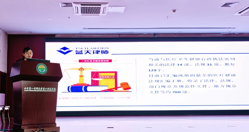 2025年9月22日下午,山东泰山蓝天律师事务所合伙人毕秀梅律师受邀为山东医科大学第二附属医院70余名新入职员工开展法律法规培训。